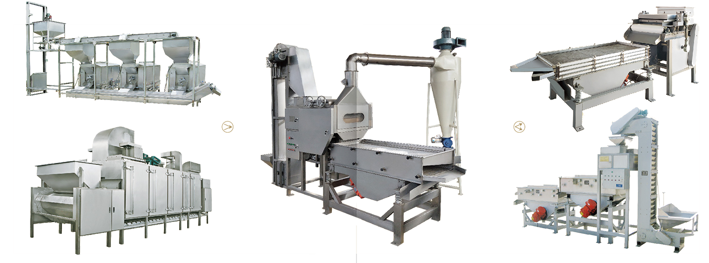 該生產線是將烘烤后的堅果去皮,進行不同粒度的切碎分級的加工設備;如:花生碎、核桃碎等。還可用于各種干燥后的果蔬類、餅干類等切碎切粒,廣泛用于各種糕點、餡料、調味品等產品。